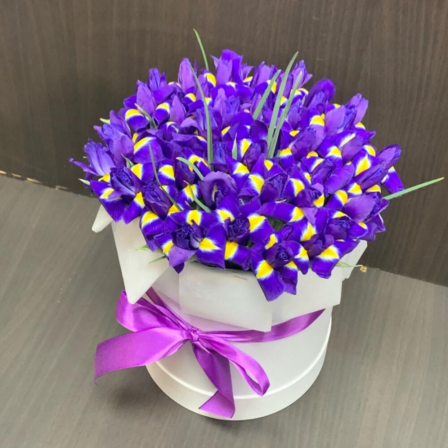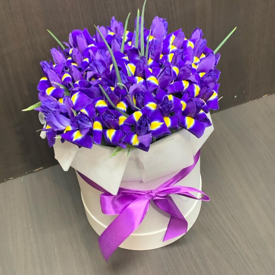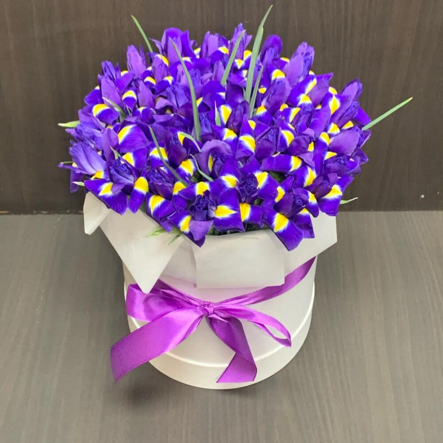 51 фиолетовый ирис в шляпной коробке в Соликамске