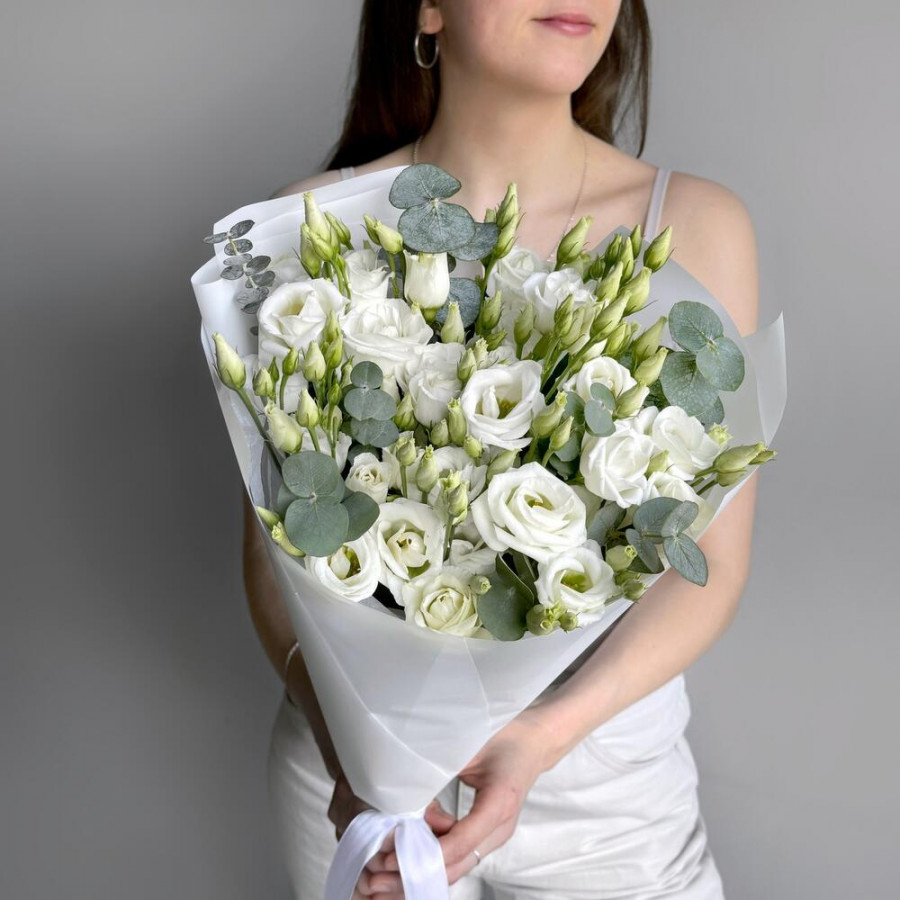 Букет из 7 белых эустом и эвкалипта в Соликамске