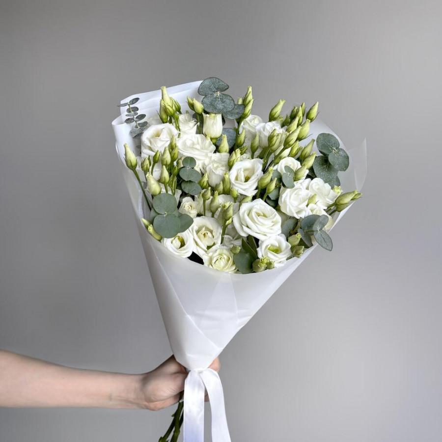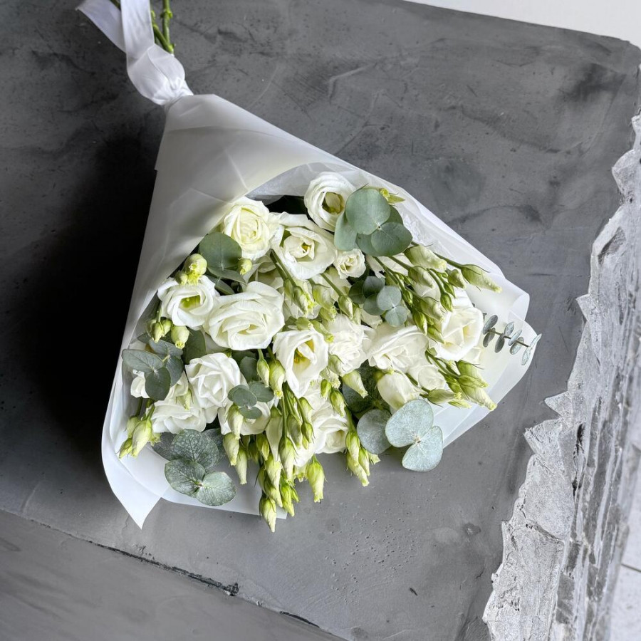 Букет из 7 белых эустом и эвкалипта фото 4