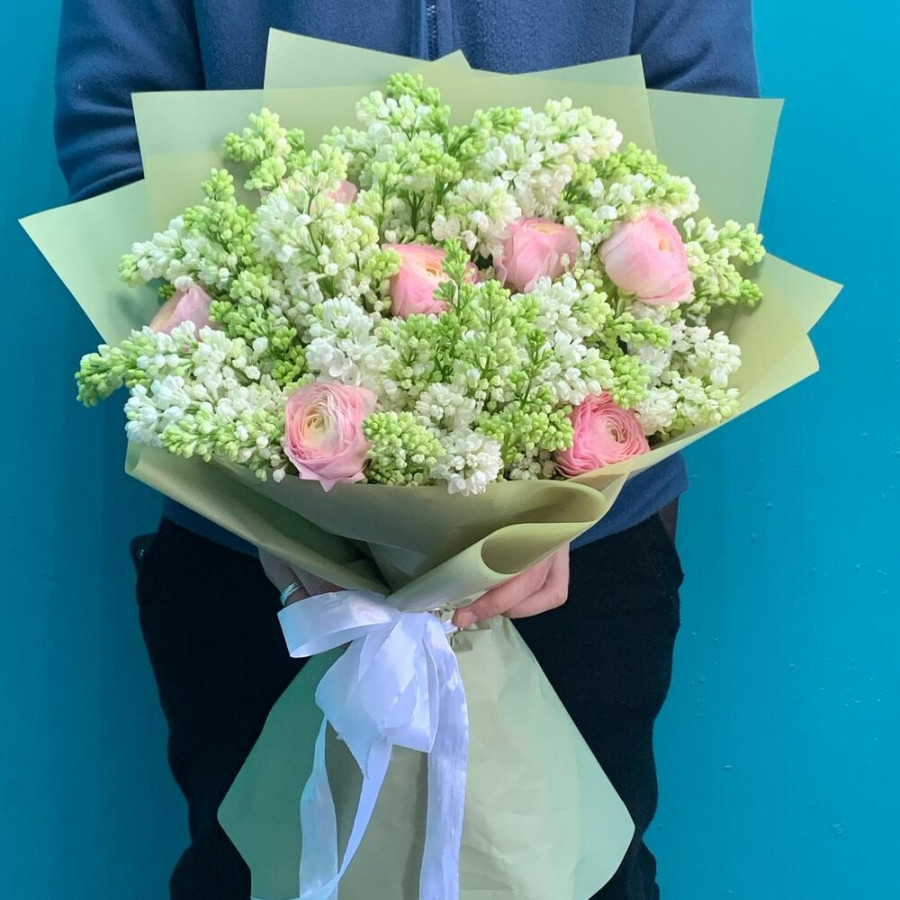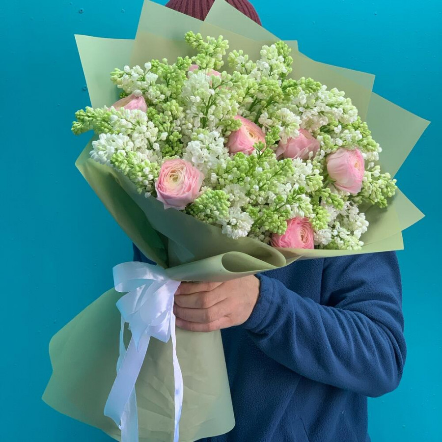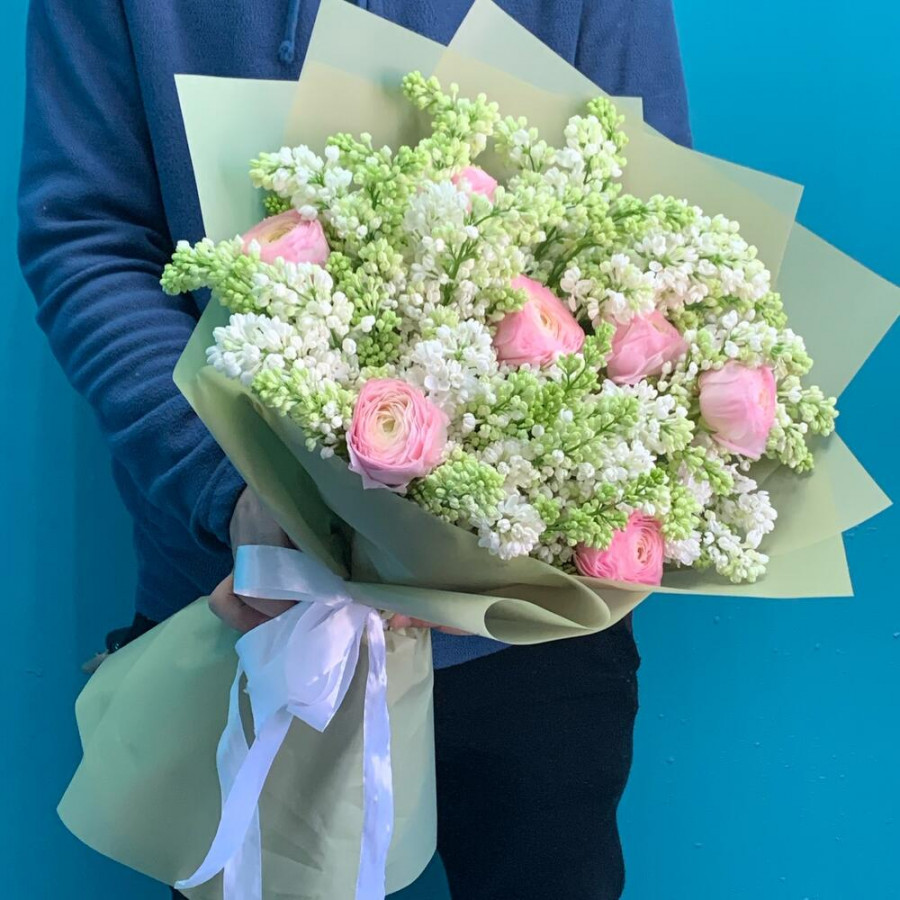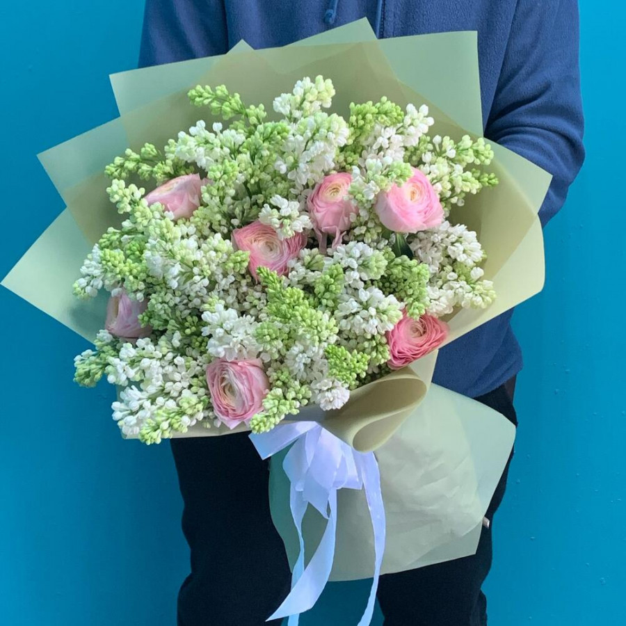 Букет из белой сирени и ранункулюсов
