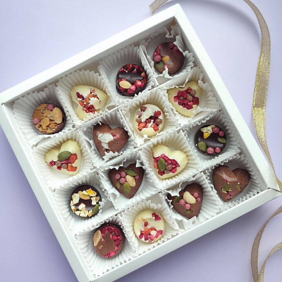 Состав : шоколад темный итальянский IRCA 48% , шоколад молочный Cargil 34%, шоколад белый 29% Cargil , сублимированная малина, клубника, абрикос, лимон, орех кешью, орех кокосовый стружка, орех арахис, орех миндаль, шоколадные шарики Callebaut клубничные, шоколадные шарики молочные, вафельная крошка, тыквенные семечки.